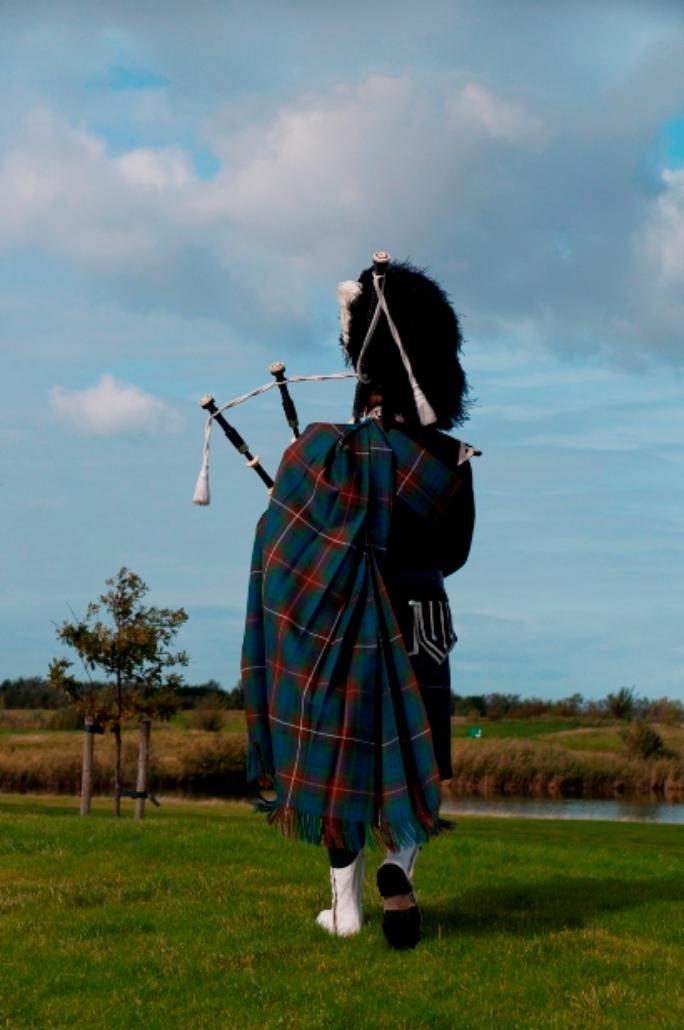 At several activities on the golf course, like a golf tournament or a party, a Scottish Piper in original outfit is a must!The volume is such that it sounds all over the golf course. Golf is of Scottish origin, the clothing and the sound of the pipes fit perfectly in the atmosphere.