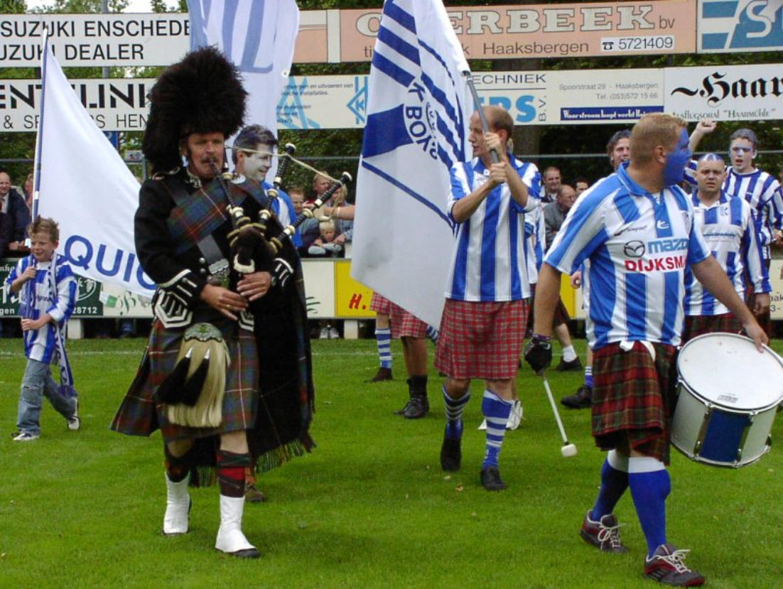 Feest nadat voetbalclub ‘Katwijkse Quick Boys’ het Nederlandse Voetbal Kampioenschap Amateurs had gewonnen.Deze club won dankzij hun enthousiaste supportersclub en het aanmoedigende geluid van de Schotse doedelzak.