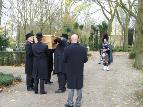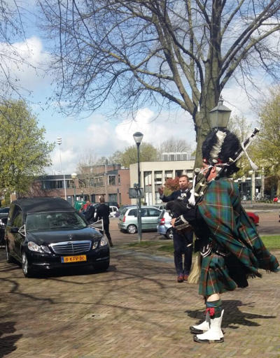 Bagpipe music at a funeralMusic is an important part of any funeral service.The bagpipes have been commemorating the loss of our loved ones with music at funeral services for hundreds of years.Many people associate bagpipes with funerals. This is because they powerfully touch our deepest emotions. The soulful and haunting sounds of the bagpipes express feelings that words alone may fail to convey.This music offers comfort during times of grief.It is ‘live’ music that I bring. Live music is pure and comes close to the heart. Music brings about something different than text and touches deeper emotions. Friends and relatives can physically focus on something, there is contact. This in contrast to distant electronically generated music from loudspeakers. The energy emanating from living music directly influences the energy of the farewell service.This music can be played in the church or other building where the funeral service is held, but also as the coffin is being borne to its final resting place in the graveyard or the crematorium.